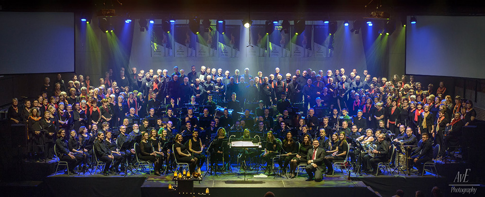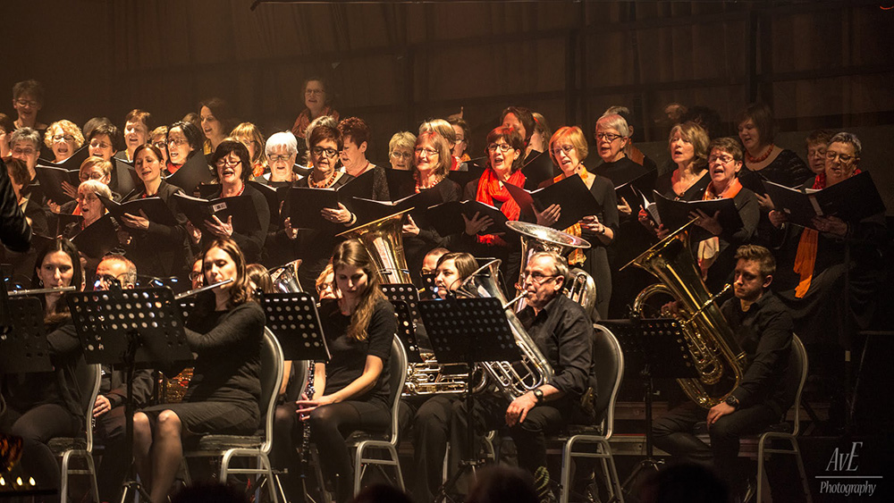 Voor ons jaarlijks concert gaan we steeds weer op zoek naar nieuwe concepten die het publiek blijven verrassen. Een grote groep vrijwilligers werkt gedurende meerdere maanden aan een totaalspektakel waarin licht en beeld een belangrijke rol spelen. De voorbije jaren waren er dankbare samenwerkingen met andere verenigingen, met uiteenlopende disciplines en met de Academie. Met elk concert worden grenzen verlegd maar er wordt steeds gewaakt over de muzikale kwaliteit en het plezier van samen muziek spelen.